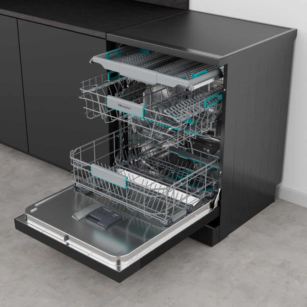 Hisense HS663A90BXUK Full Size Dishwasher – Black Inox