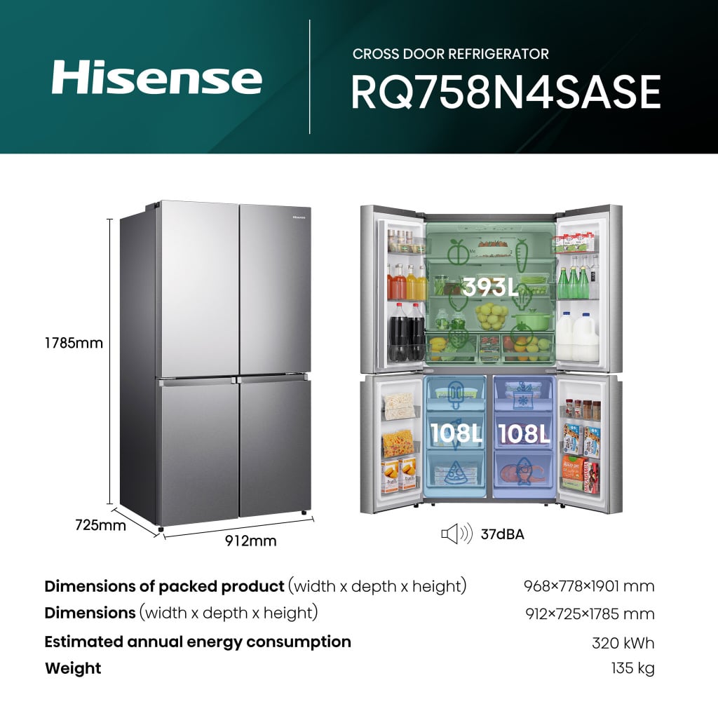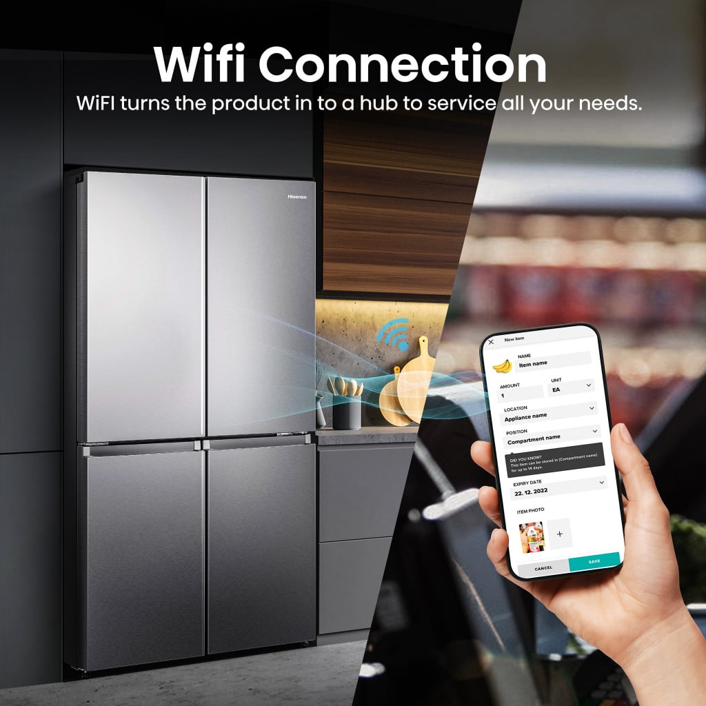 Hisense PureFlat RQ758N4SASE Frost Free American Fridge Freezer – Stainless Steel – E Rated – WIFI