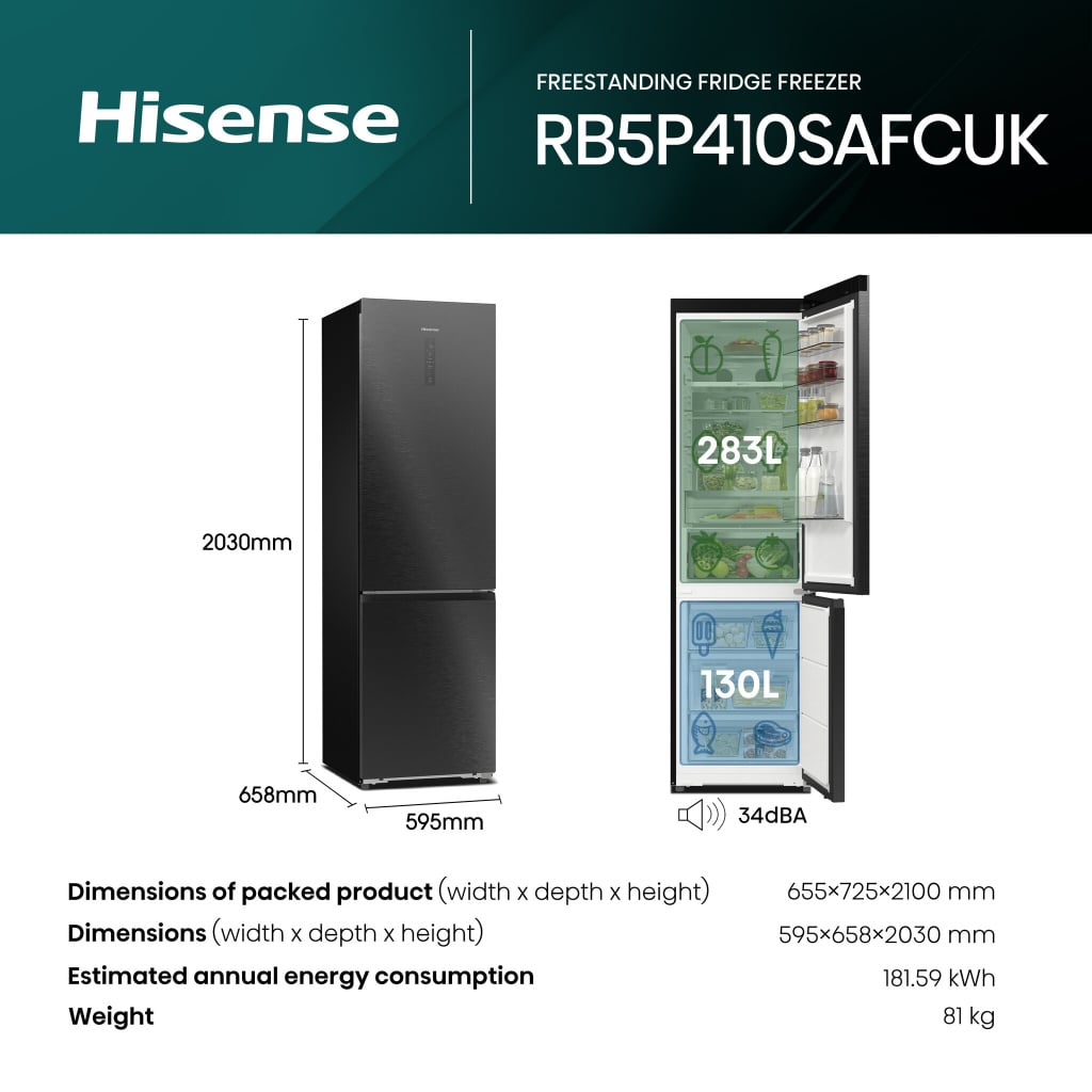 Hisense RB5P410SAFCUK Pureflat 70/30 2m Fridge Freezer Black Stainless Steel – C Rated