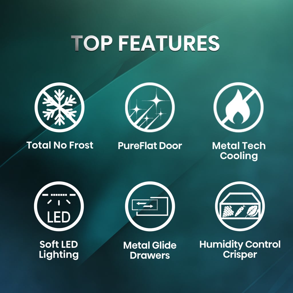 - Multi-air flow — Keeps every shelf cool
