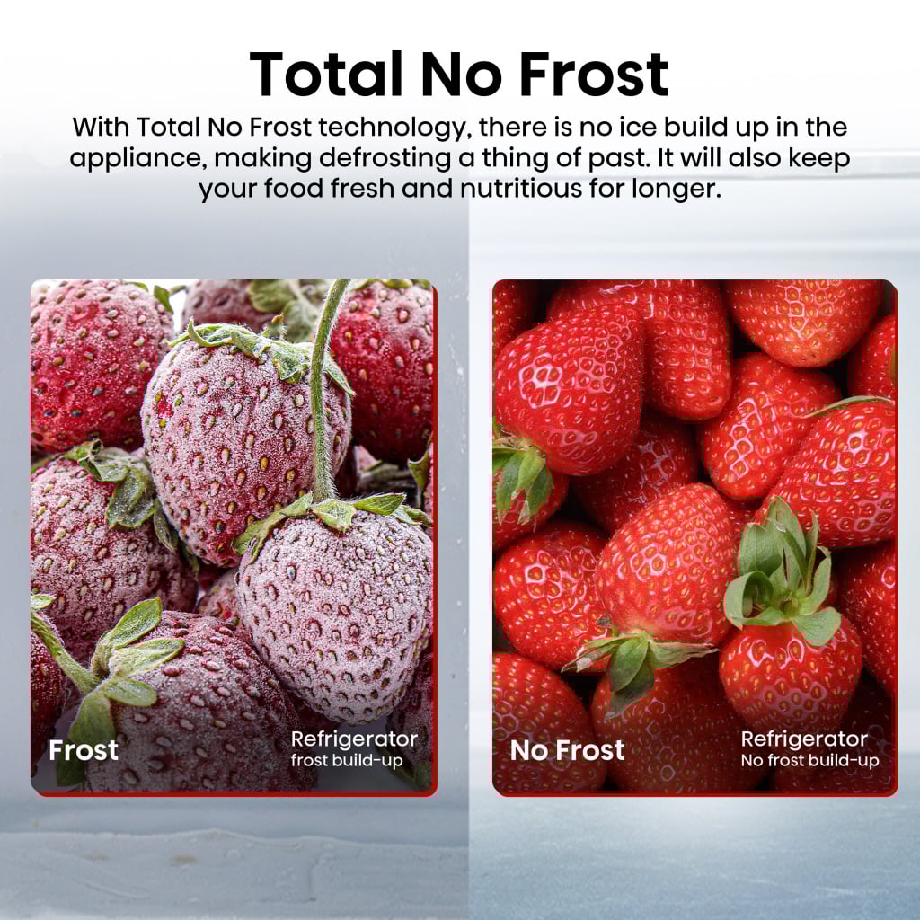 - Total no frost — Even temps reduce build-ups