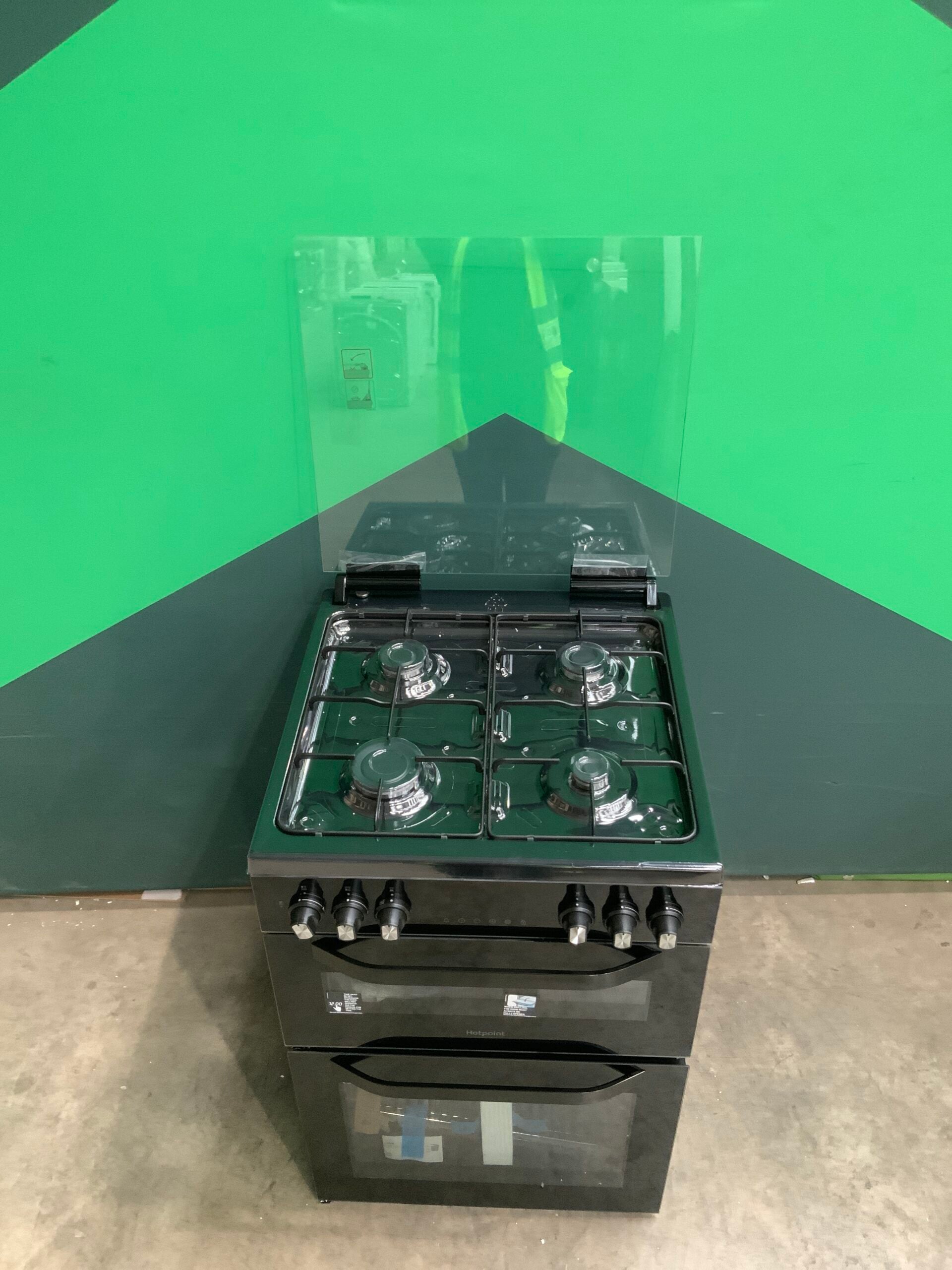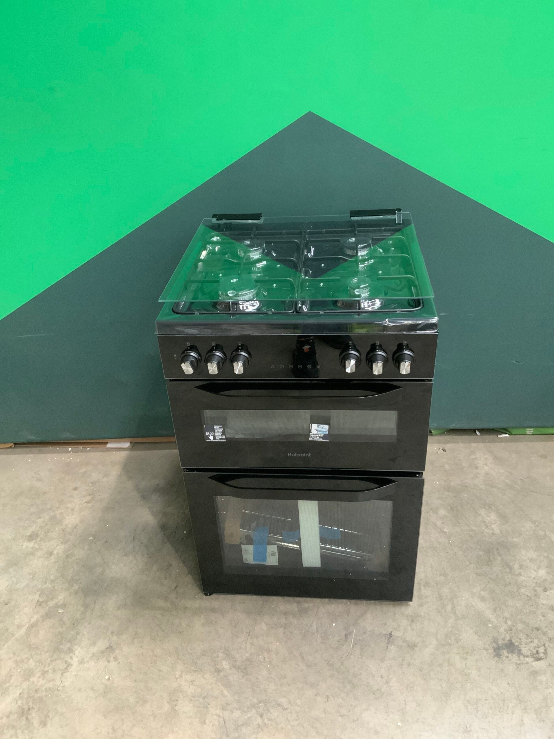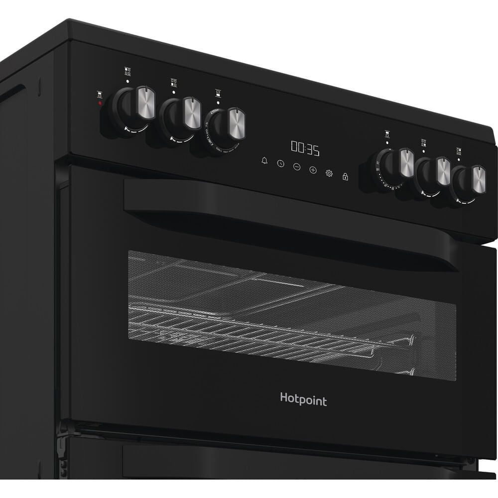 Hotpoint 60cm Freestanding Dual Fuel Double Cooker with Glass Lid