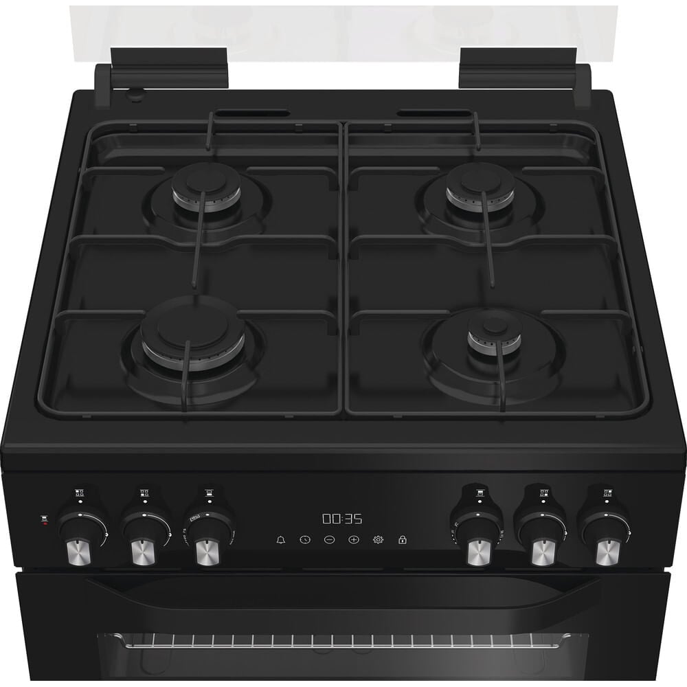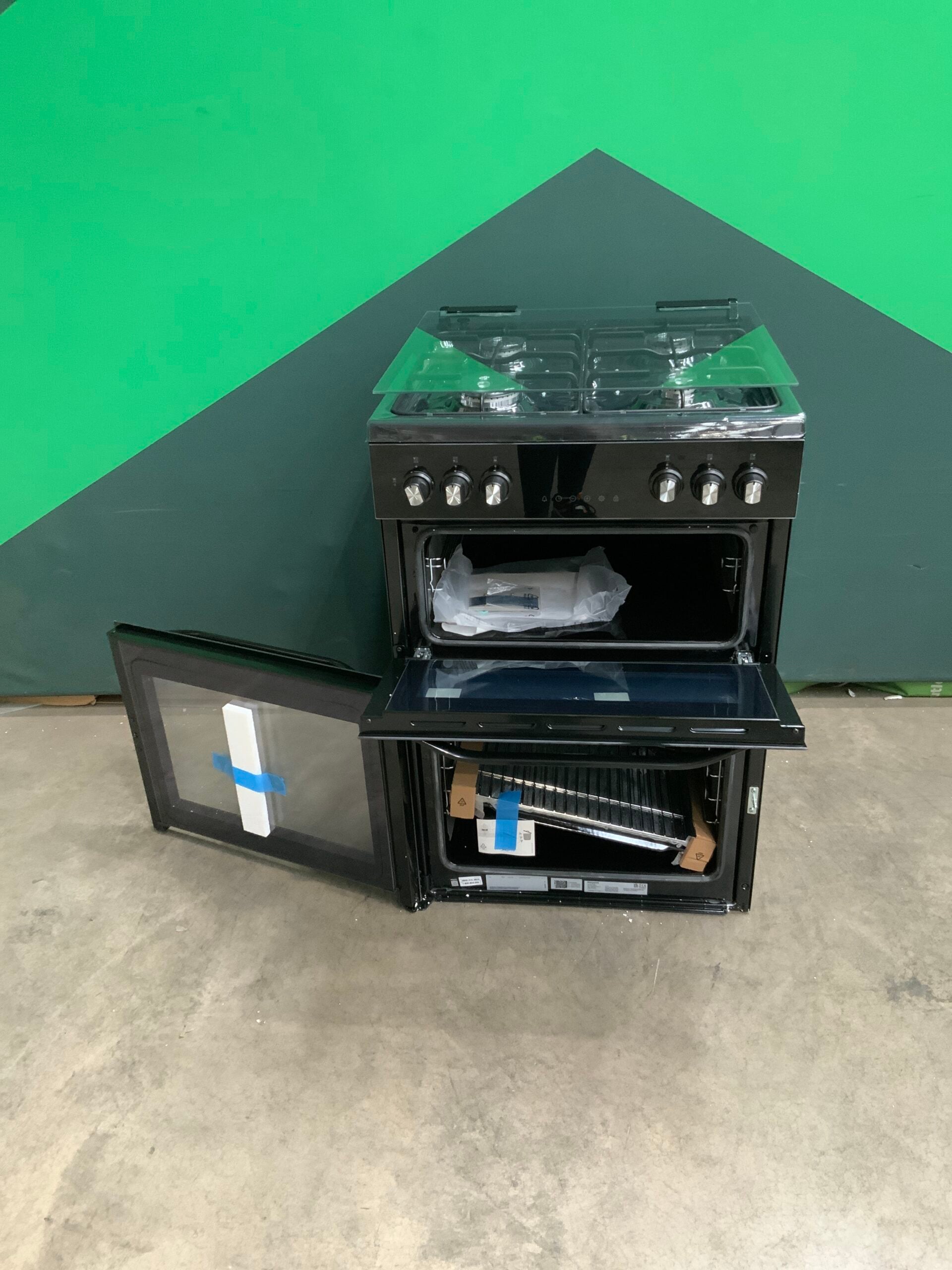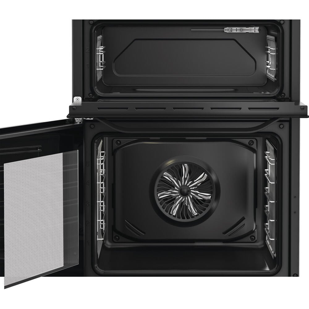 Hotpoint 60cm Freestanding Dual Fuel Double Cooker with Glass Lid