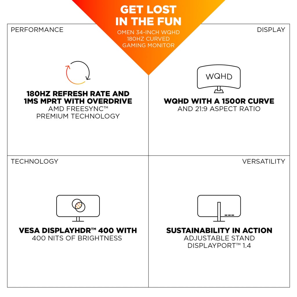 OMEN 34 inch WQHD 180Hz Curved Gaming Monitor – OMEN 34c G2