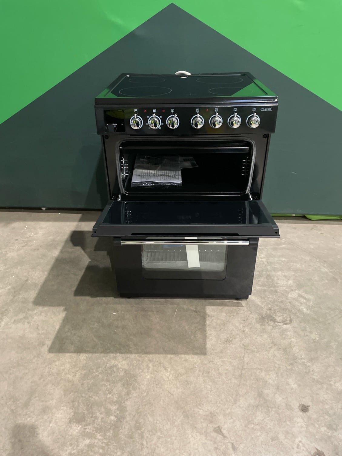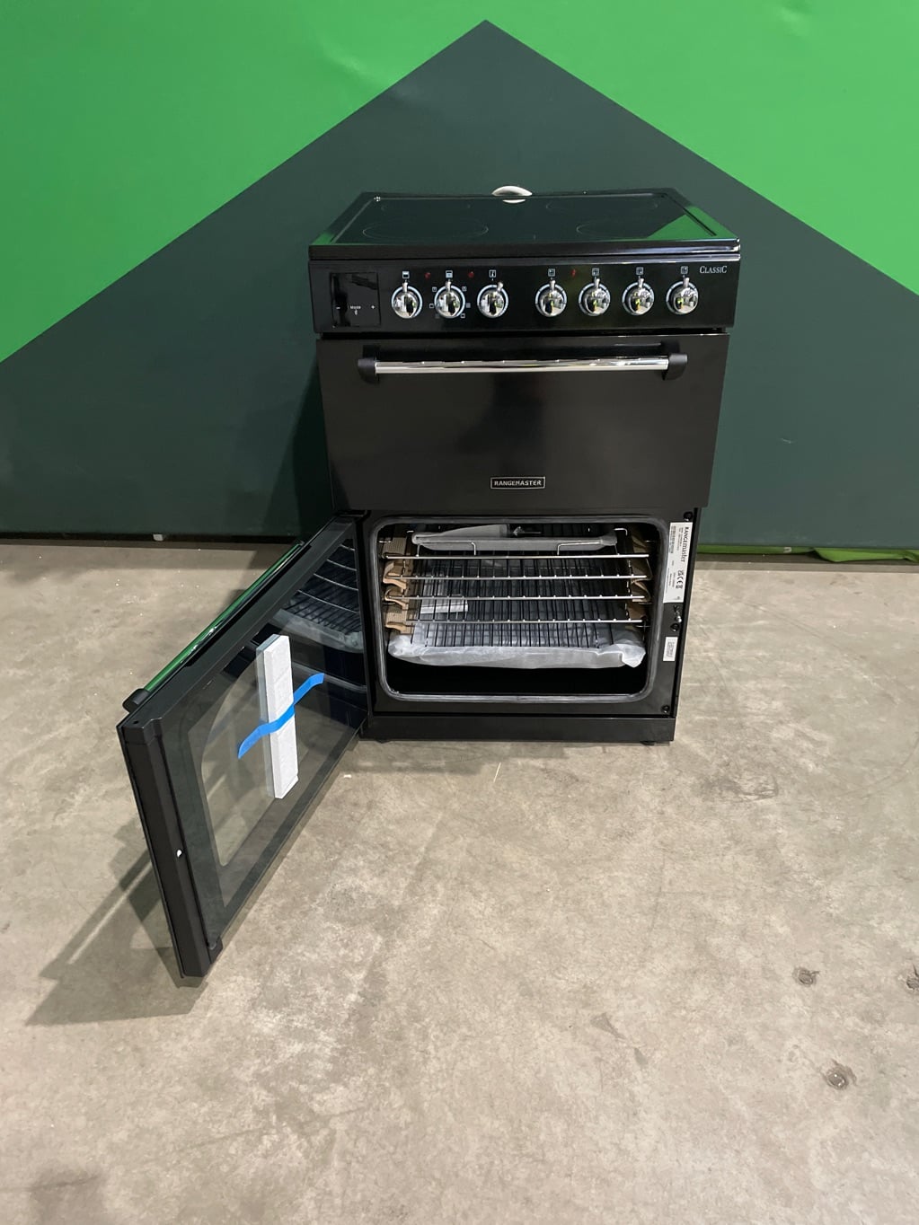 Rangemaster Classic 60 CLA60ECBL/C 60cm Wide Double Oven Electric Cooker with Ceramic Hob – Black / Chrome – A/A Rated #403223